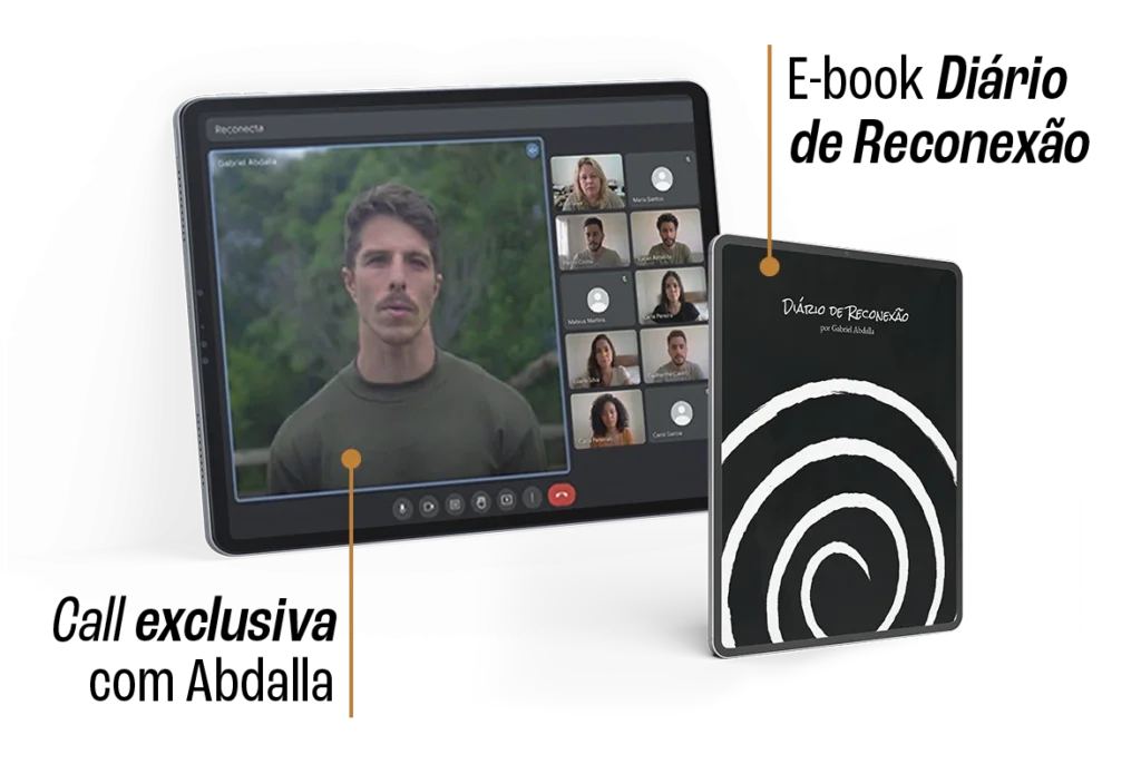 Os 50 primeiros que assinarem o Reconecta ganham uma call exclusiva com o Abdalla e o e-book Diário de Reconexão (Um diário guiado com 20 práticas, para acompanhar a própria transformação ao longo do tempo. Cada prática combina base teórica com instruções diretas e espaço de registro).